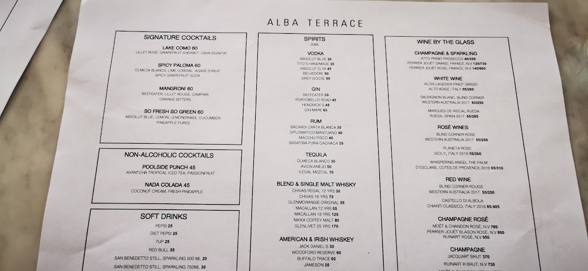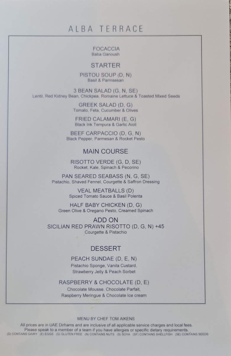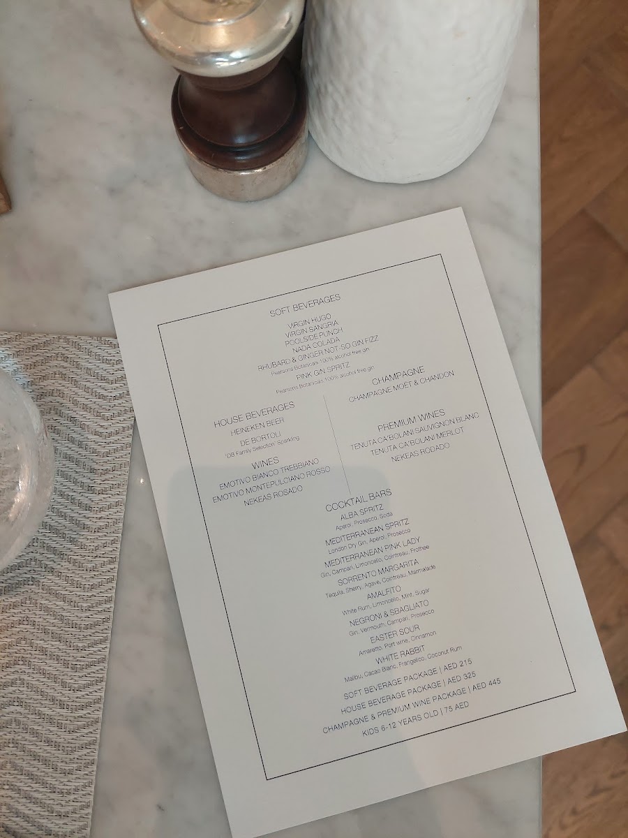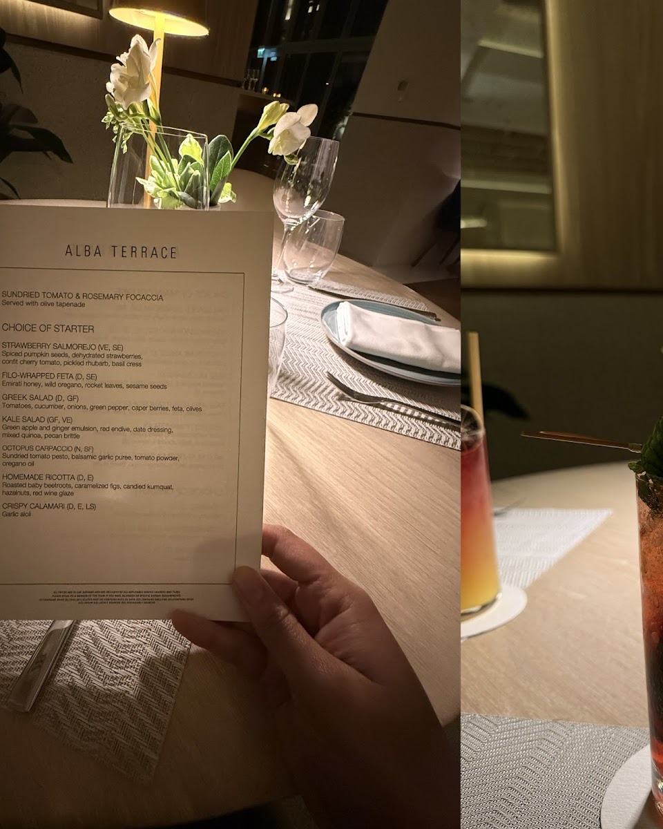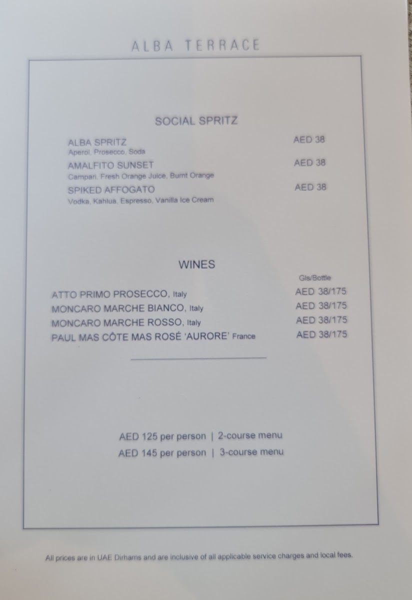 Alba Terrace at The Abu Dhabi EDITION impresses with a menu that balances refined simplicity with bold flavors, offering a selection that caters to both light bites and indulgent treats. The breakfast offerings shine with the Avocado & Eggs, a perfectly balanced dish that combines creamy avocado with delicately cooked eggs, presenting a fresh start to the day. For seafood enthusiasts, the Red Snapper Carpaccio stands out, showcasing the fish’s natural sweetness with subtle citrus notes and a delicate seasoning that elevates the dish without overpowering it. On the sweeter side, the Sicilian Cheesecake Slice delivers a luxurious finish, its rich texture and nuanced flavor profile making it a memorable dessert. Overall, Alba Terrace’s menu demonstrates careful attention to detail, combining classic techniques with modern presentation, ensuring each dish-from starters to desserts-feels thoughtfully crafted and effortlessly satisfying.